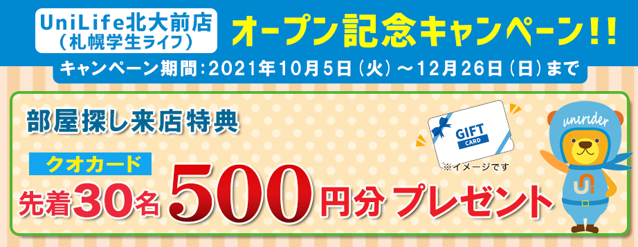 2021年10月5日(火)UniLife北大前店(札幌学生ライフ)が リニューアル オープンしました。