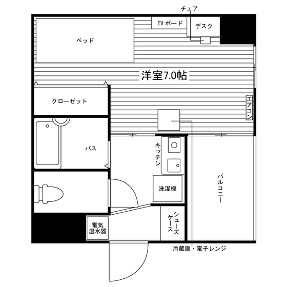 当学生マンションの居室には、予め家具家電が備え付けられています。引越し代や家具家電の購入費用・手間・時間、処分代などを大幅に削減できるため、入居後すぐに生活が開始できます♪